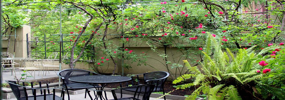 შიდა ეზოები, მწვანე ტერასები - შესანიშნავი ადგილები, როგორც დასვენებისთვის, ასევე განმარტოებული მუშაობისთვის, ზაფხულის ცხელ თვეებში.