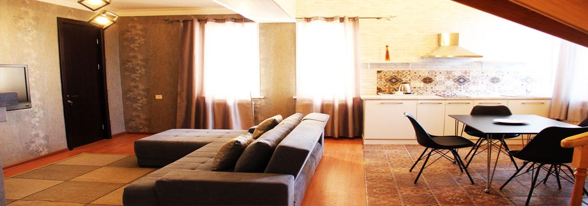 Роскошный двухуровневый люкс с тремя комнатами (Апартамент) располжен на 5-ом этаже гостиницы ИЛИАНИ что позволяют вам иметь полную независимость и одновременно наслаждаться всеми привилегиями и удобствами собственной квартиры в отеле.
